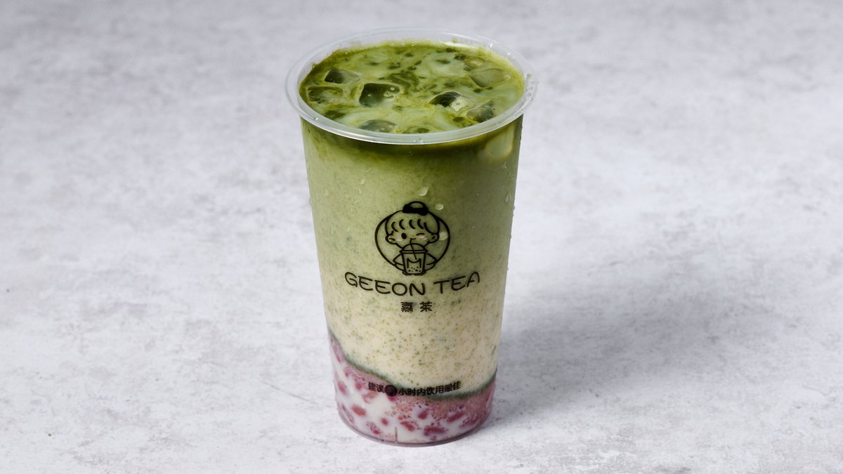 Matcha red beans milk tea