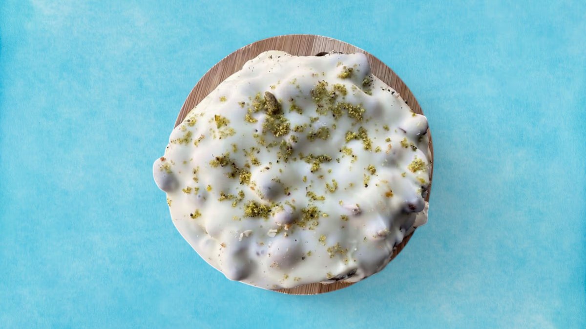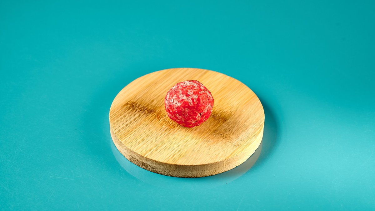 Χωρίς προσθήκη ζάχαρης. Κανταΐφι, φιστίκι Αιγίνης, ανθός καρύδας, βανίλια Μαδαγασκάρης, κουβερτούρα γάλακτος, λυοφιλοποιημένο σμέουρο, αγελαδινό βούτυρο, αλάτι