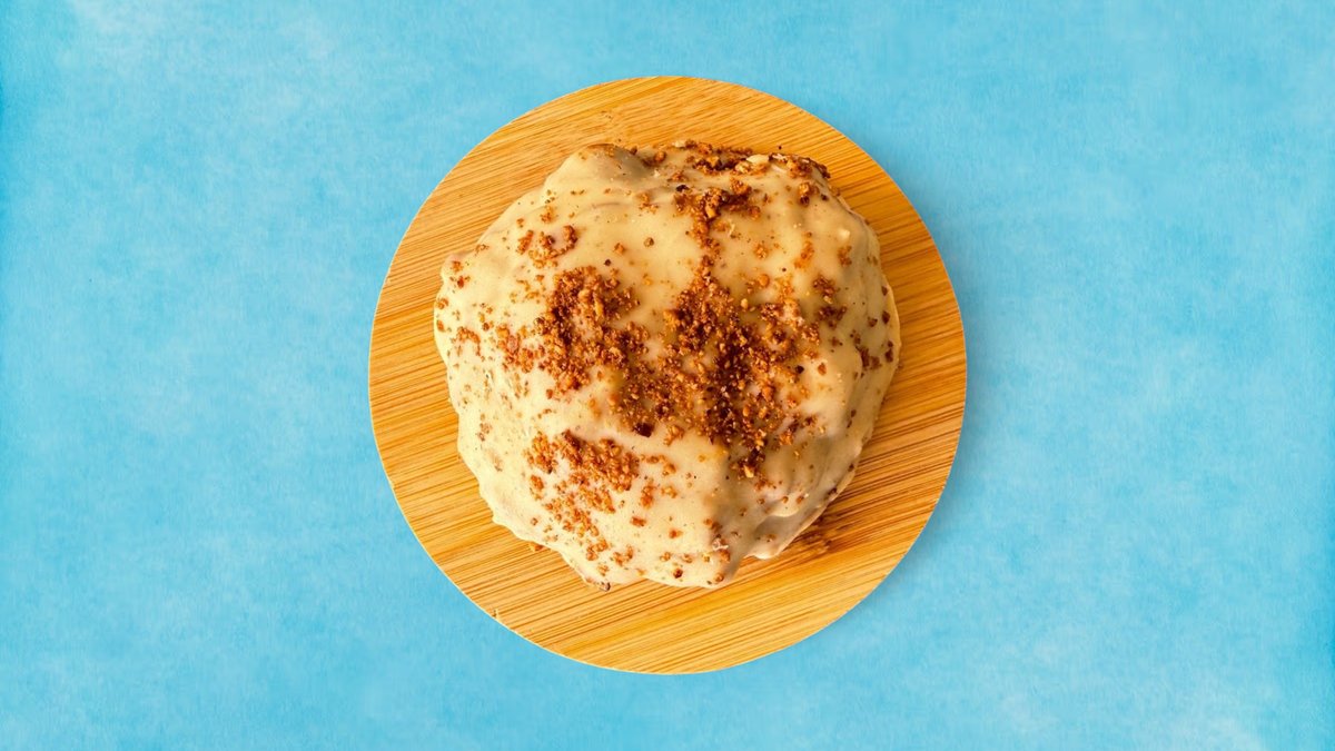 Χωρίς προσθήκη ζάχαρης. Μαλακό μπισκότο Bueno με χειροποίητη πραλίνα φουντουκιού ,τραγανές νιφάδες δημητριακών, βουτηγμένο σε λευκή σοκολάτα και φουντουκοβούτυρo.