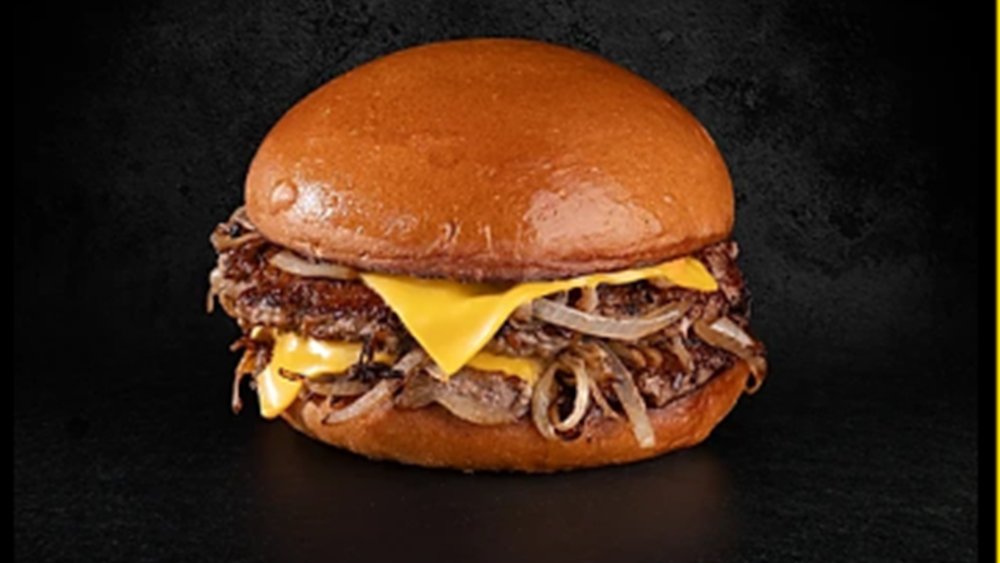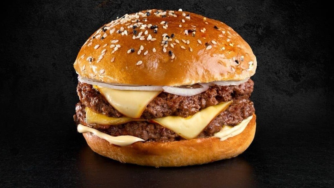 Αφράτο ψωμάκι brioche με 2 μπιφτέκια από 100% μοσχαρίσιο κιμά, ψημένα smash μαζί με κρεμμύδι, 2 φέτες cheddar και burger sauce