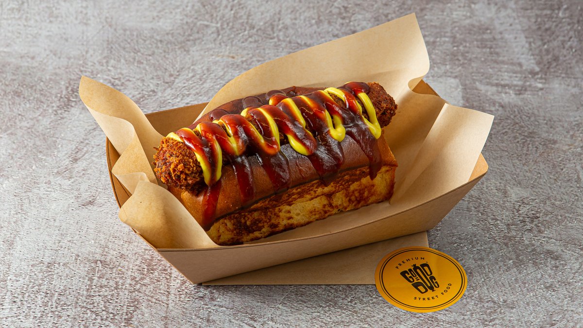 Με τηγανητό παναρισμένο λουκάνικο, coleslaw, πίκλες, μουστάρδα και mississippi bbq sauce