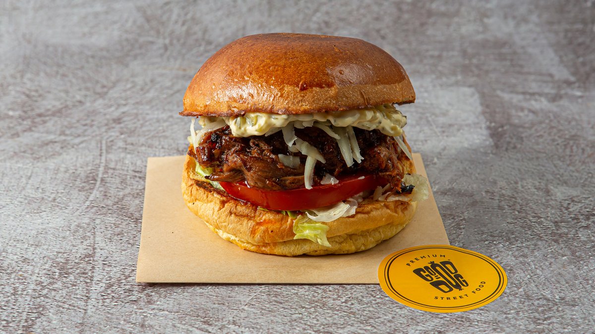 Pulled brisket, bbq tequila, iceberg, pickle sauce, ντομάτα , γραβιέρα