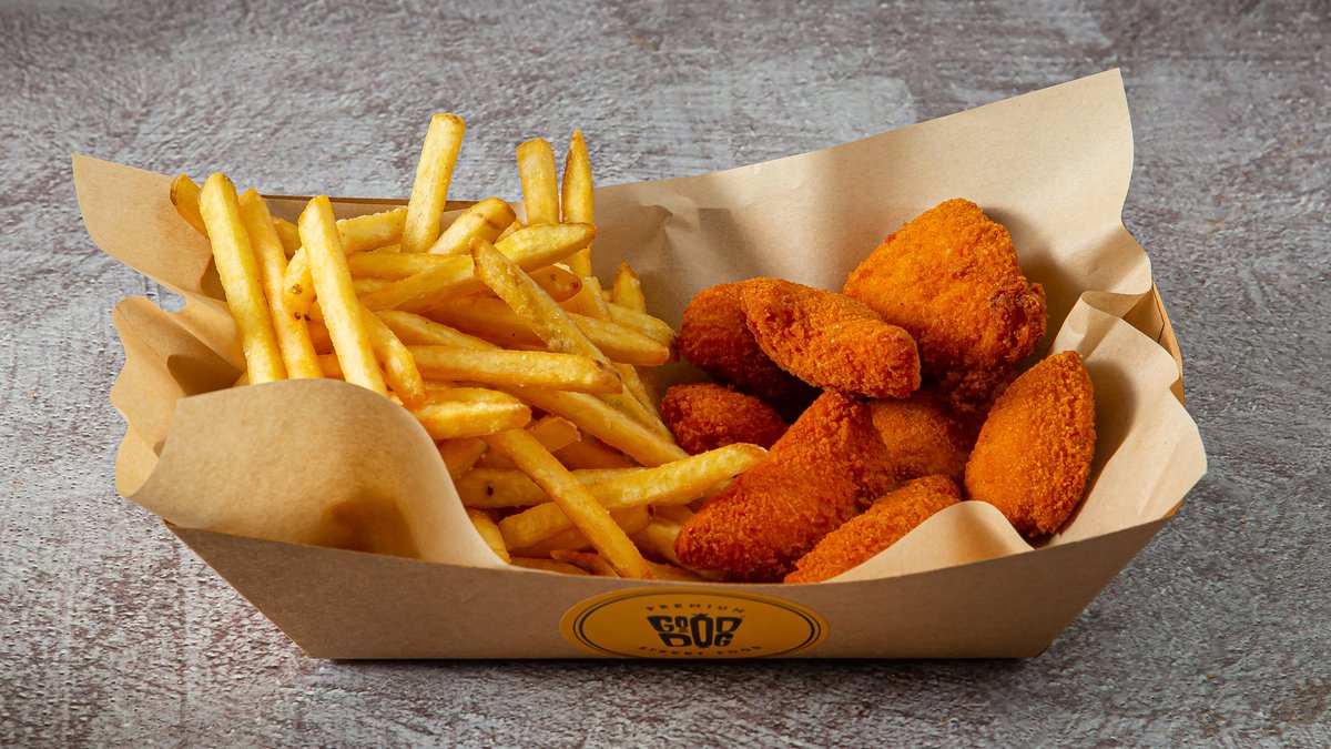 8-10 Τεμάχια. Συνοδεύεται από πατάτες τηγανητές sticks, μαγιονέζα και ketchup