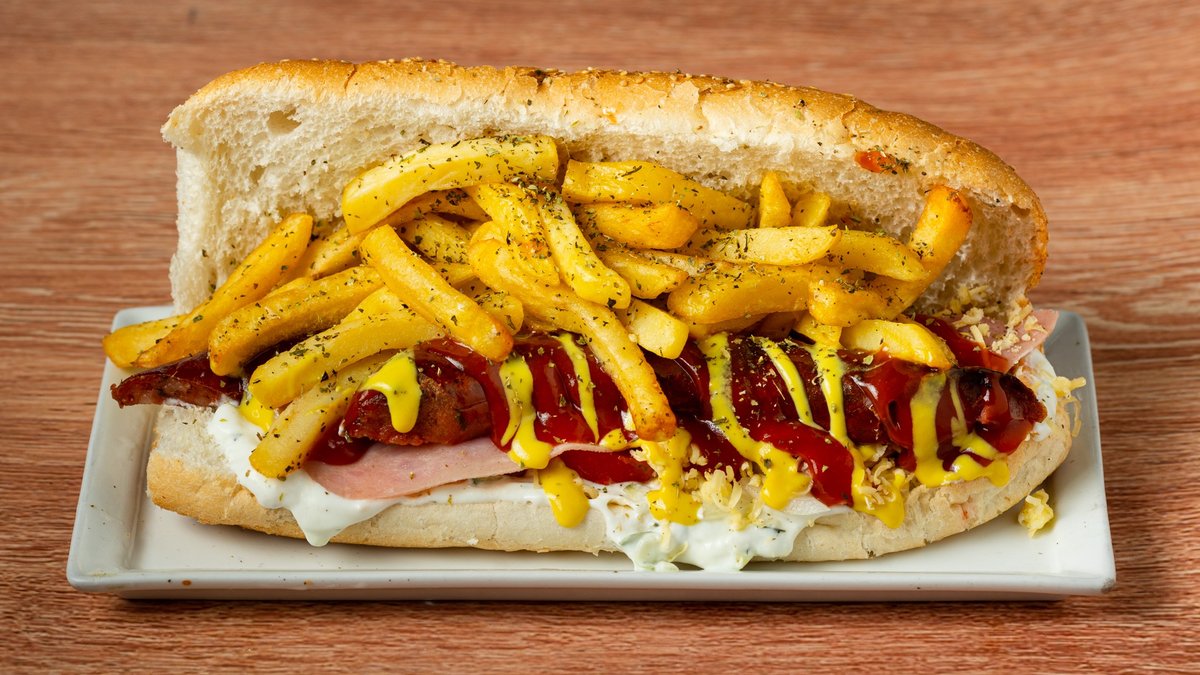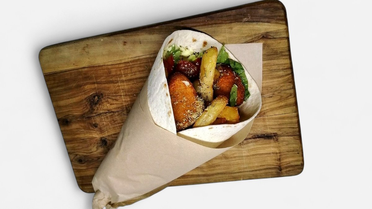 Συνοδεύεται από πατάτες τηγανητές, ντομάτα, κρεμμύδι και σως της επιλογής σου