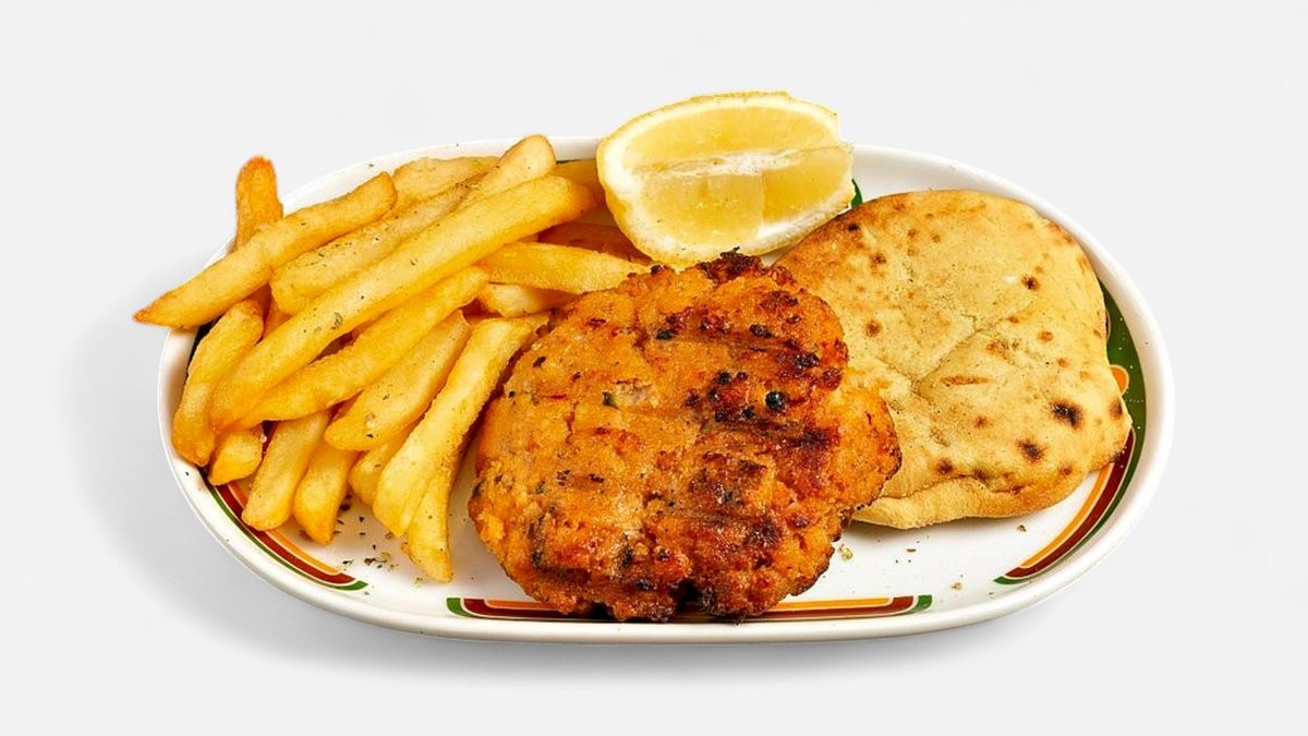Συνοδεύεται από πατάτες τηγανητές και 2 πίτες. Η τελική τιμή του προϊόντος θα διαμορφωθεί με βάση την ποσότητα που θα επιλέξεις