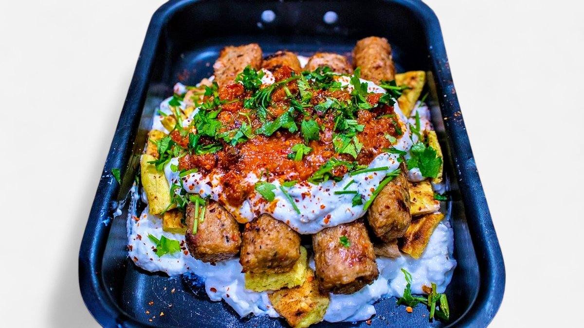 Συνοδεύεται από μπούκοβο, πίτα, μαϊντανό και σως γιαουρτλού