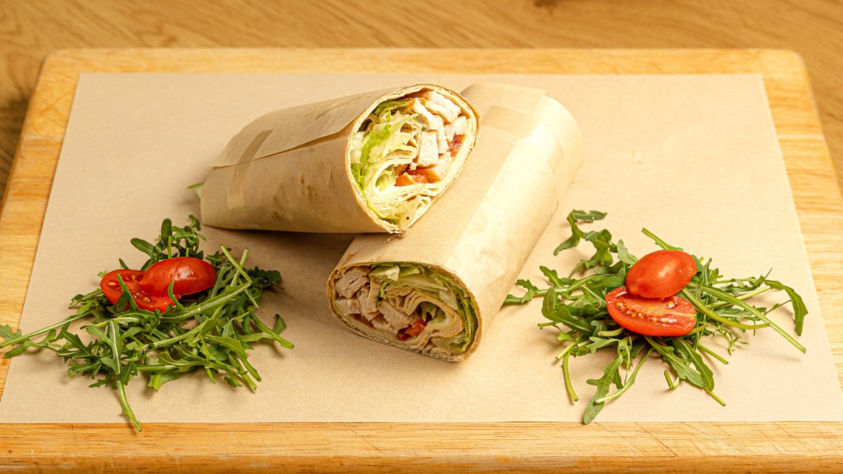 Με gouda, φιλέτο κοτόπουλο, μπέικον, μαρούλι και sauce της επιλογής σου. Συνοδεύεται από πατάτες τηγανητές