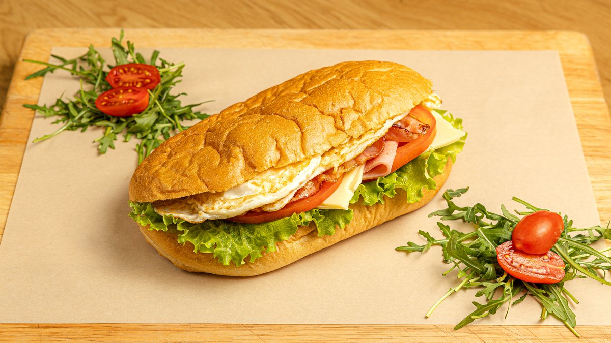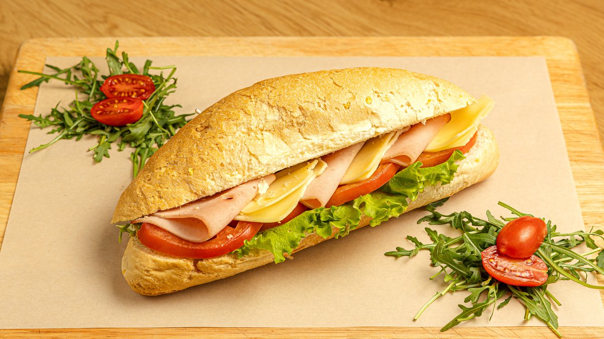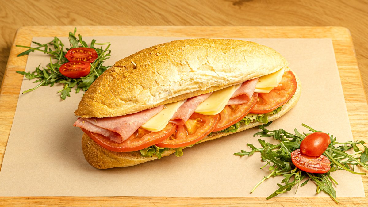 Με ζαμπόν, gouda, ντομάτα, μαρούλι και μαγιονέζα