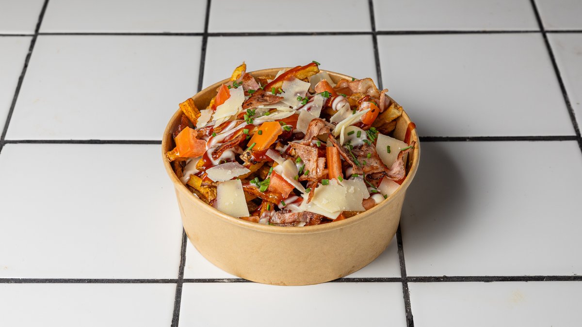 Bacon, παρμεζάνα, ντομάτα, barbecue σως και μαγιονέζα