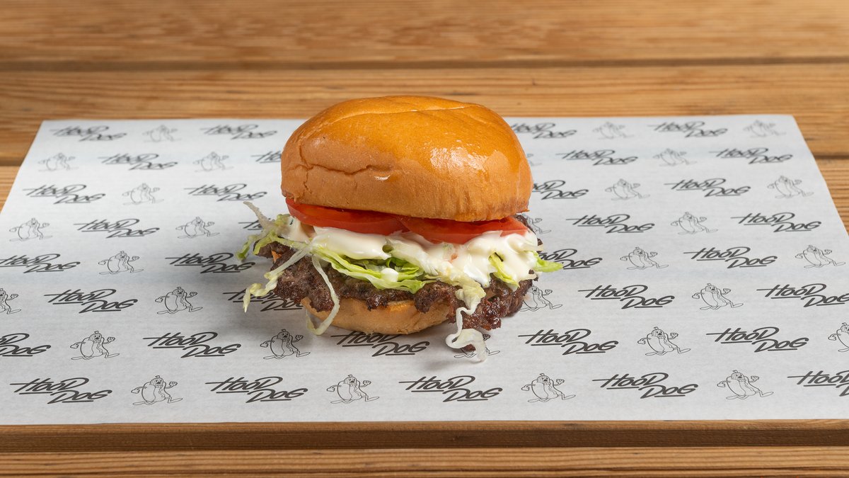 Με μπιφτέκι, ντομάτα, iceberg, μαγιονέζα και κέτσαπ