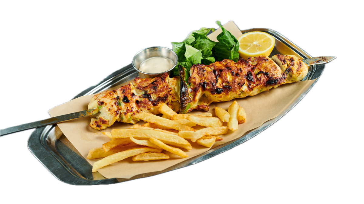 4 Τεμάχια. Συνοδεύεται από πατάτες τηγανητές, ντομάτα, κρεμμύδι, πίτα και τζατζίκι