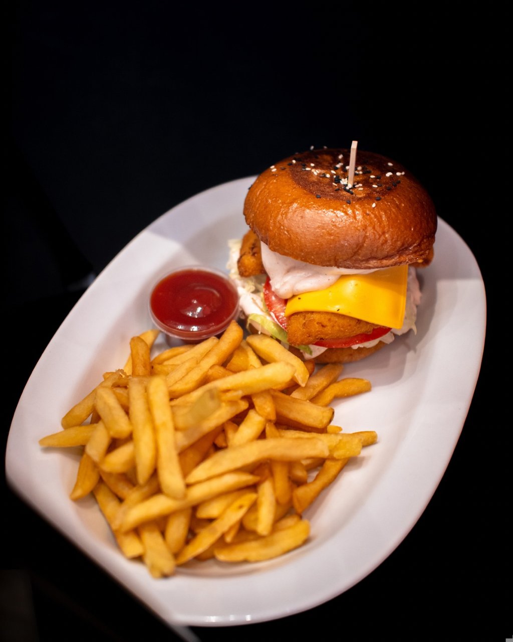Συνοδεύεται από πατάτες τηγανητές, ντομάτα, κρεμμύδι, πίτα και σως της επιλογής σου