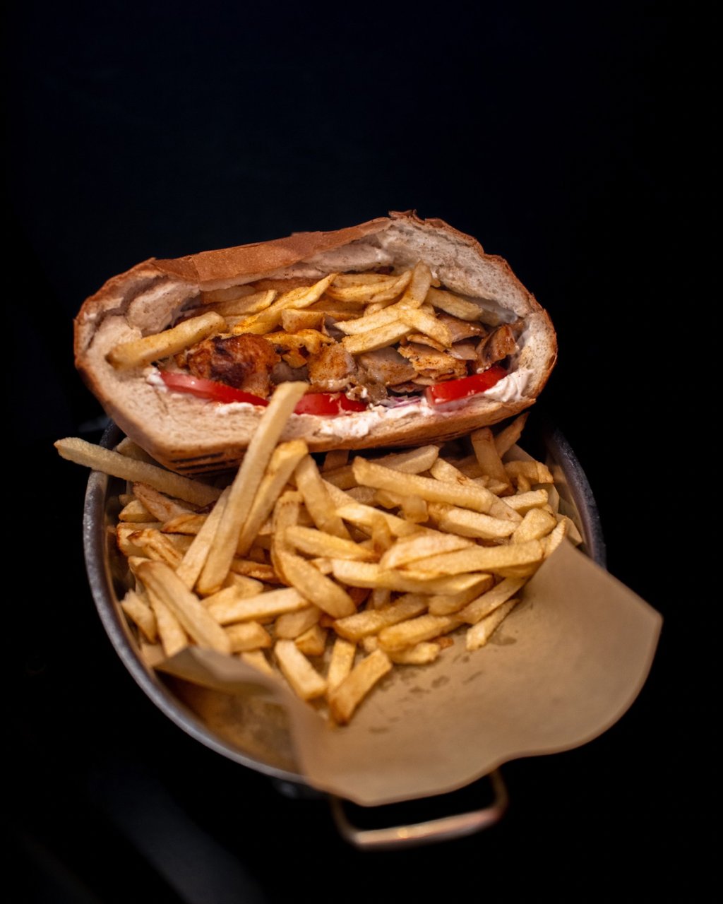 Σκεπαστή κεμπάπ με υλικά της επιλογής σου. Συνοδεύεται από πατάτες τηγανητές