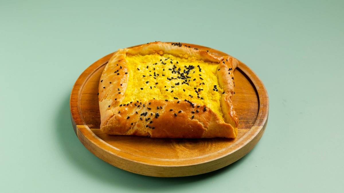 Αφράτο, βουτυρένιο ζυμαράκι γεμιστό με κασέρι, μπεσαμέλ και μοτσαρέλα