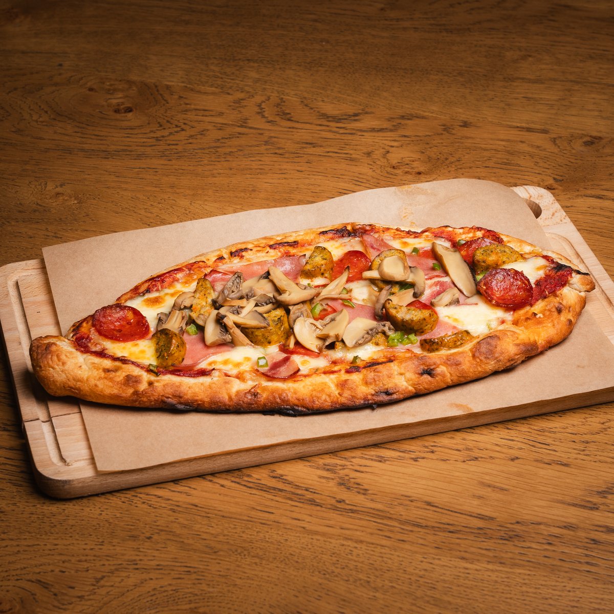 Γαλοπούλα, τυρί, μανιτάρια, πιπεριά, ντοματίνια