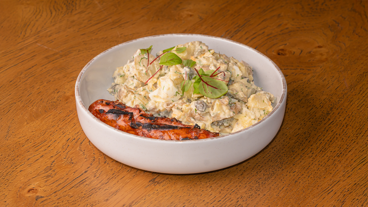 Μοσχαρίσιος κιμάς, καλαμπόκι, κρεμμύδι, ντομάτα, αγγούρι και σως γιαουρτιού