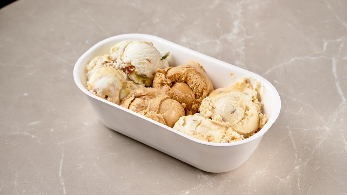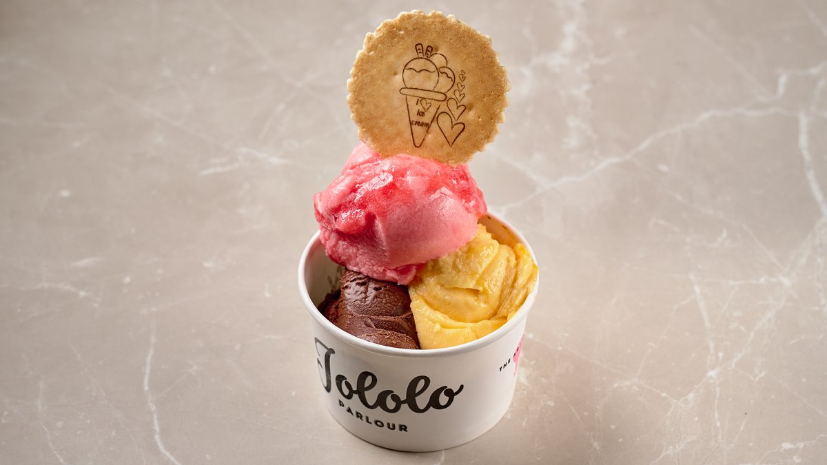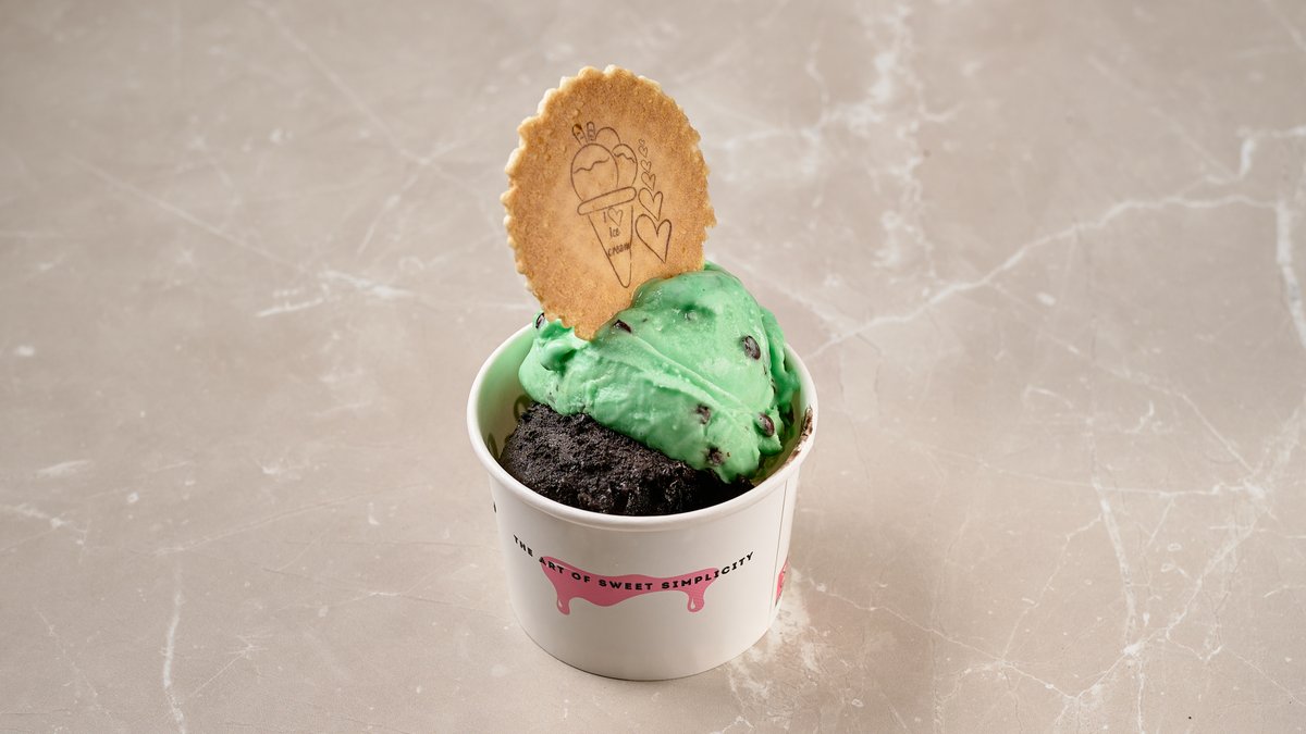 Βάφλα τρεις μπάλες παγωτό Σοκολάτα που παγώνει