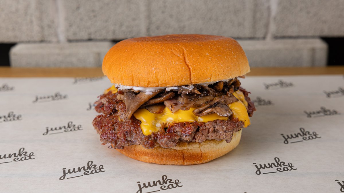 Με μοσχαρίσιο μπιφτέκι 100%, junk sauce, πίκλες και cheddar