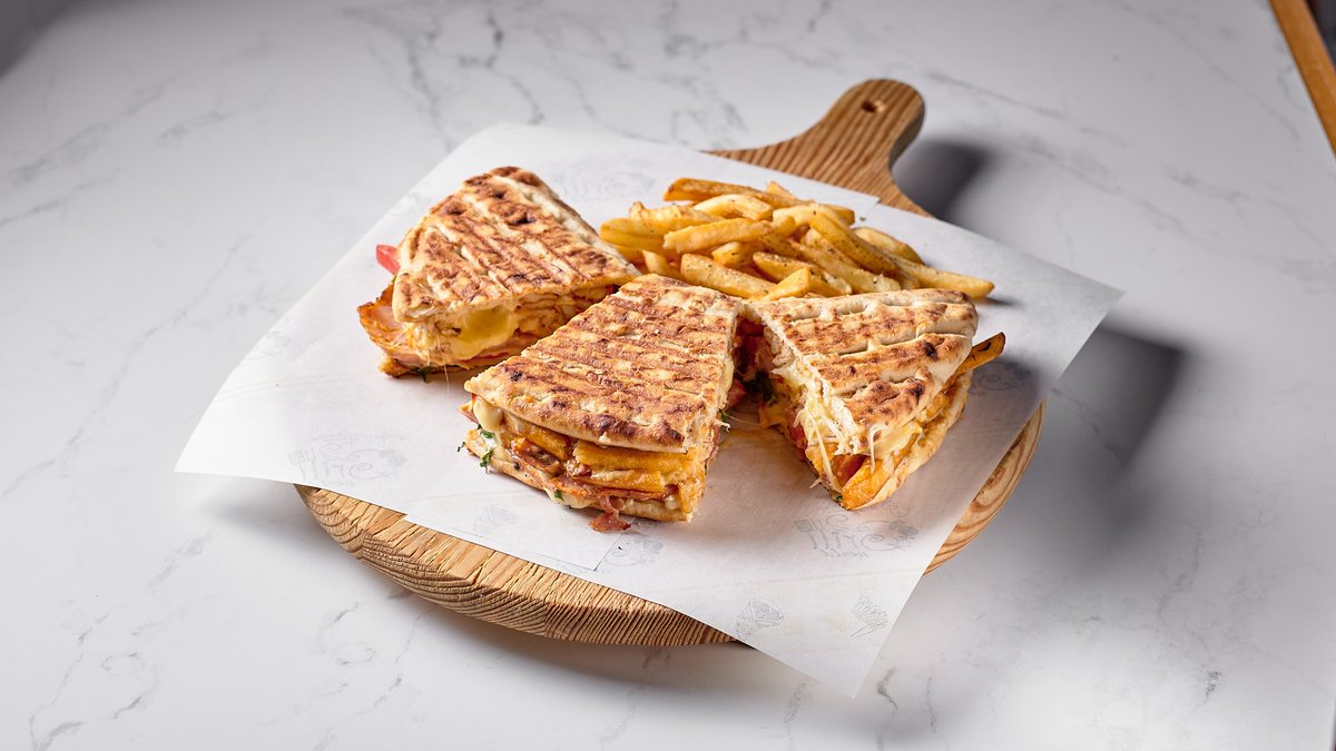 Με gouda, γαλοπούλα, μπέικον, ντομάτα, μαρούλι και μαγιονέζα. Συνοδεύεται από πατάτες τηγανητές