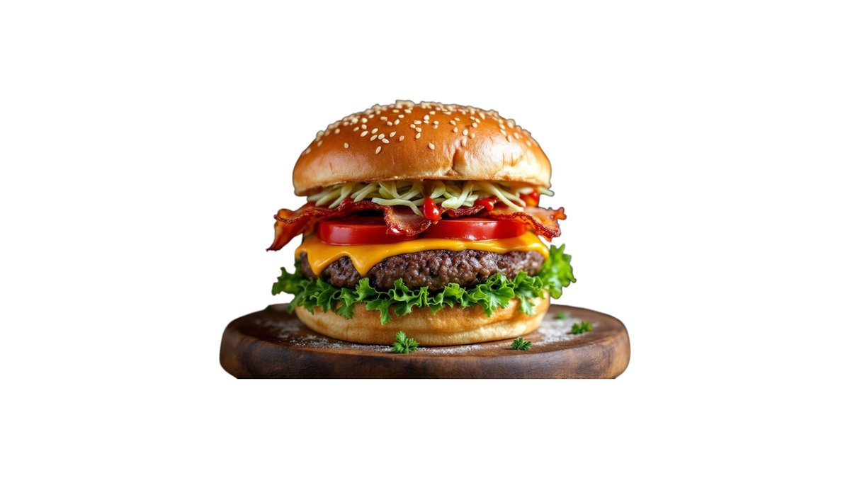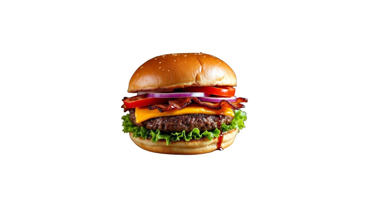 Με μπιφτέκι από 100% μοσχαρίσιο κιμά, μπέικον, cheddar, ντομάτα, κρεμμύδι, iceberg και BBQ σως