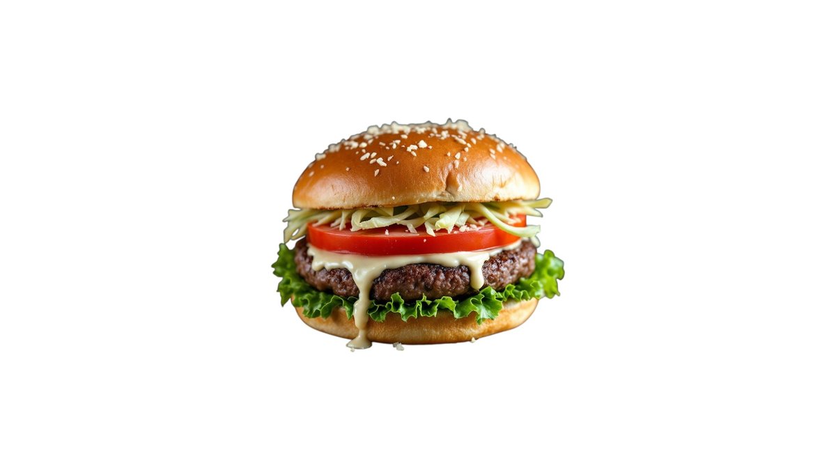Με μπιφτέκι από 100% μοσχαρίσιο κιμά, ντομάτα, iceberg, ketchup και μουστάρδα