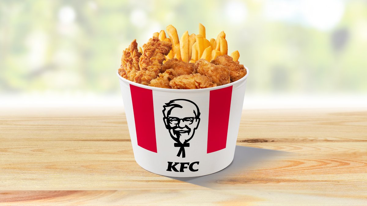 1 Bucket Boneless (8 crispy Strips + 14 nuggets) ή Duo (10 hot wings + 8 crispy strips) + 2 Fillet/ Zinger Burgers + 2 Medium Fries