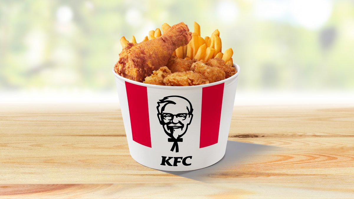1 Variety Bucket (4 COB + 6 crispy strips + 10 hot wings) + 2 Fillet/ Zinger Burger + 2 Cheeseburger + 2 Medium Fries