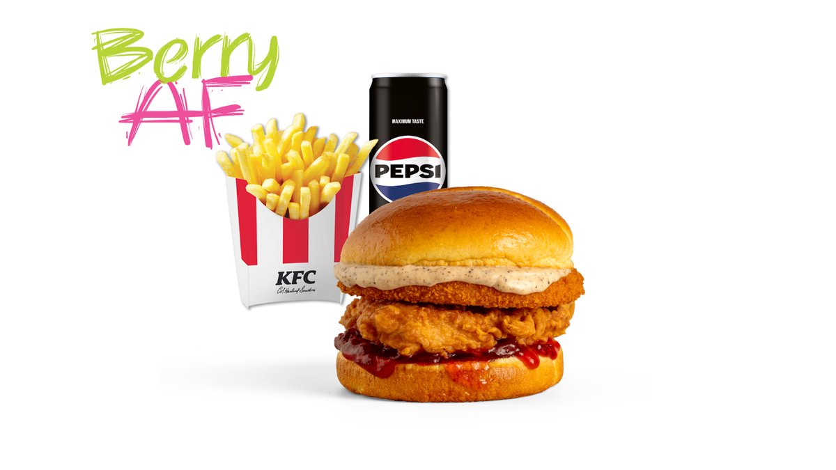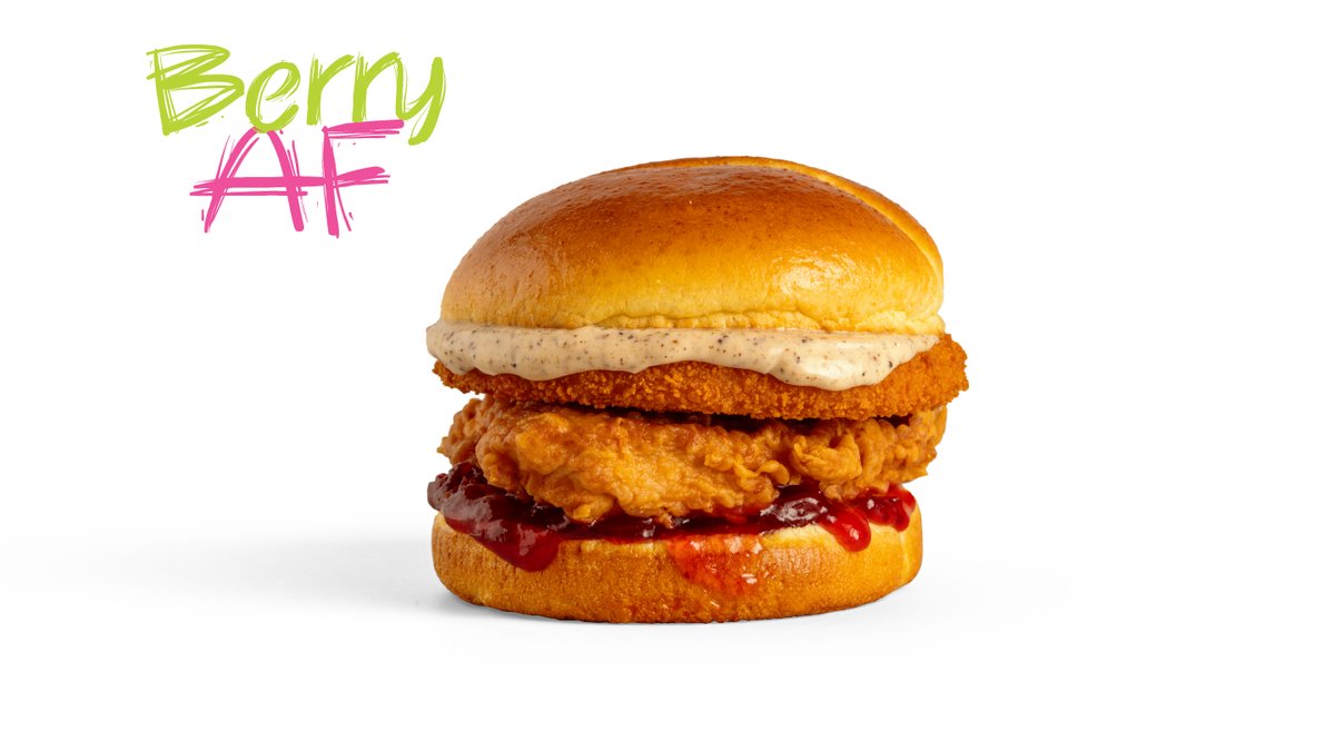 Με έναExtra AF Berry Burger (ζουμερό φιλέτο κοτόπουλο με potato bun, cream cheese patty, pepper mayo και cranberry sauce), πατάτες και αναψυκτικό 0.33 l!