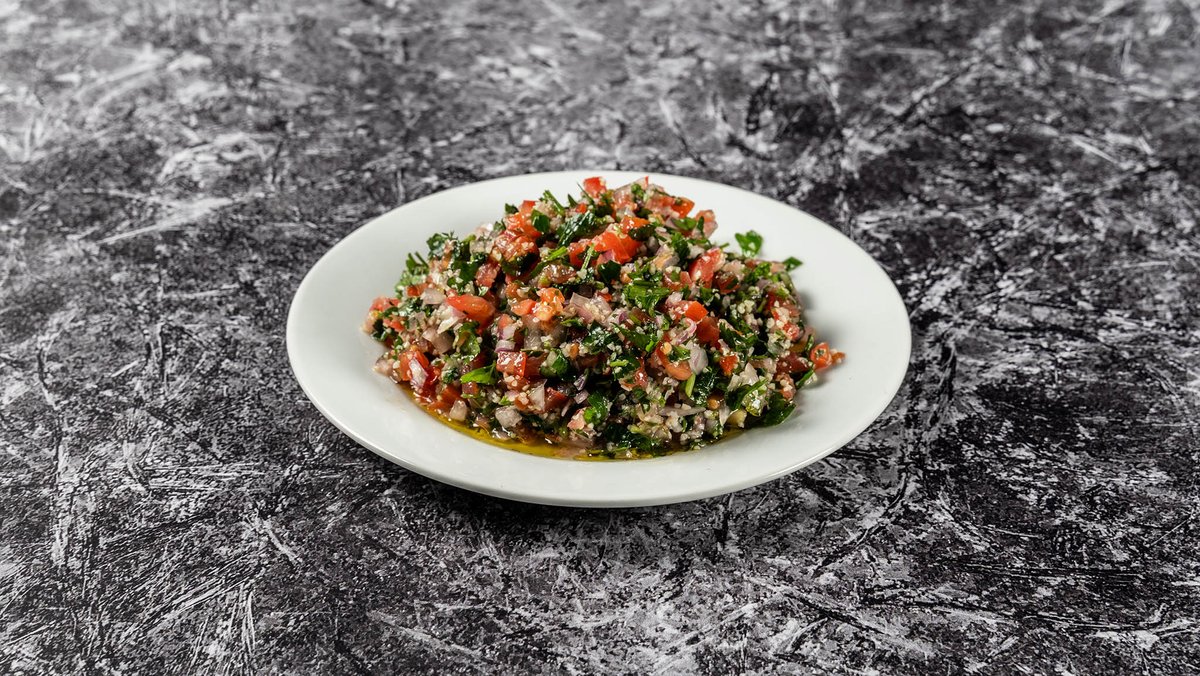 Πατάτα, ντομάτα, κρεμμύδι, τζατζίκι. Συνοδεύεται από μίνι πίτα