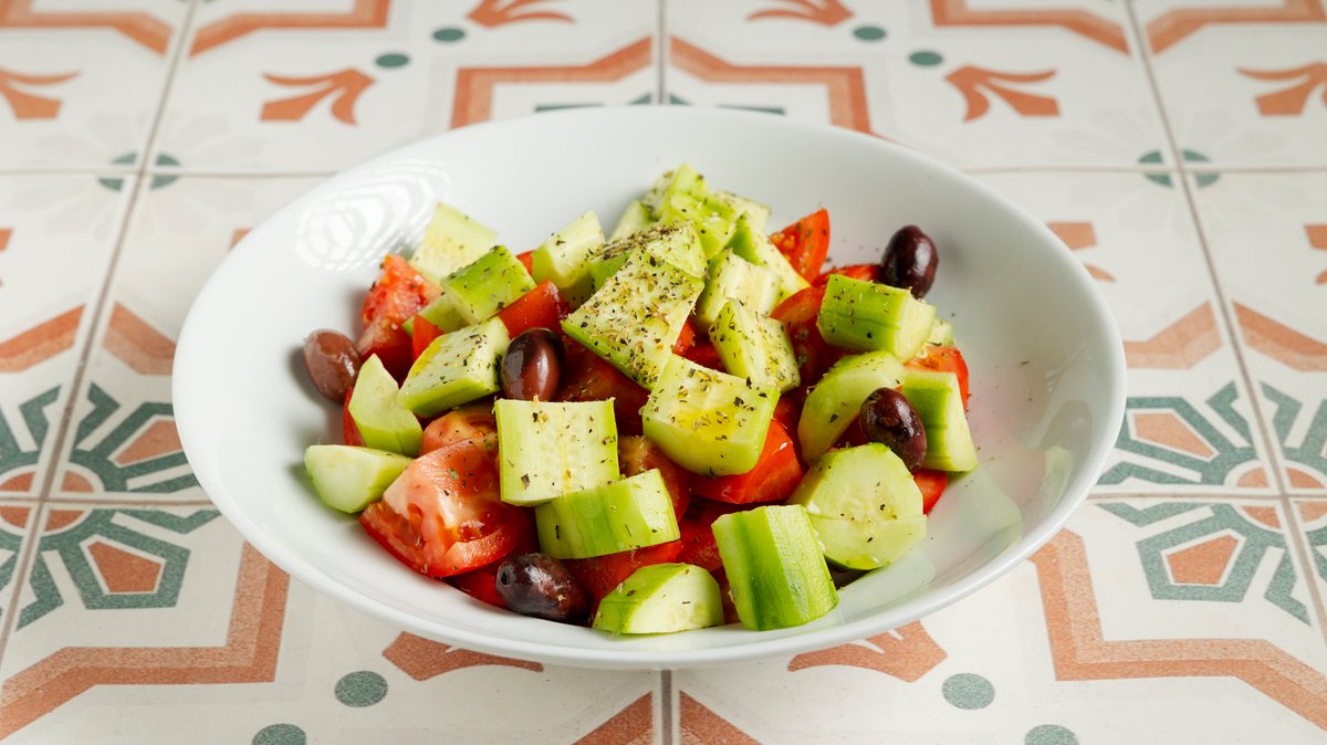 Σαλάτα με ντομάτα, αγγούρι και ελιές