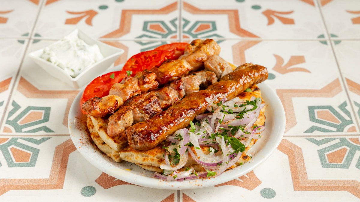 Για 2 άτομα. Με γύρο χοιρινό, 2 κεμπάπ, 2 καλαμάκια χοιρινά, 2 καλαμάκια κοτόπουλο, 1 σουτζούκι και 1 λουκάνικο χωριάτικο. Συνοδεύεται από πατάτες τηγανητές, 2 πίτες, ντομάτα, κρεμμύδι, τζατζίκι και πικάντικη σάλτσα