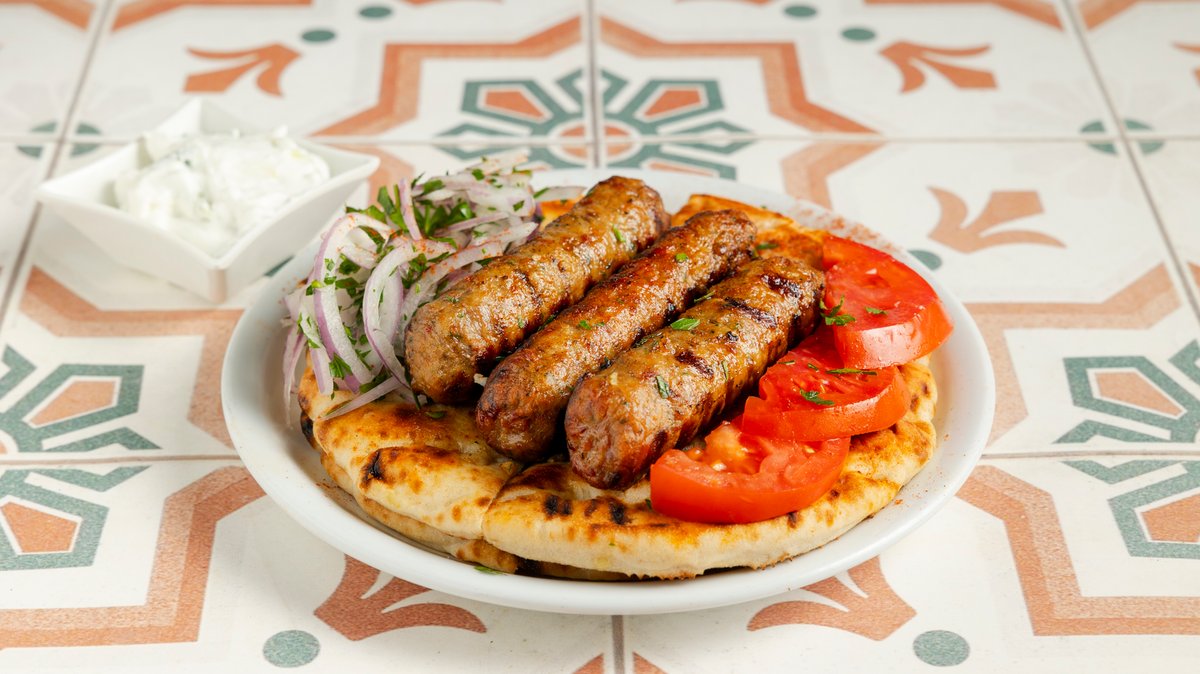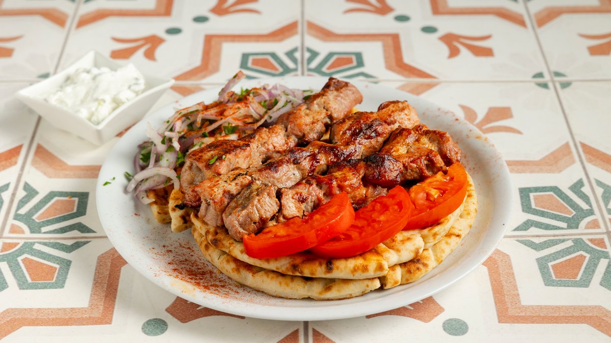 2 Τεμάχια. Συνοδεύεται από ντομάτα ψητή, κρεμμύδι, τζατζίκι και 1 πίτα