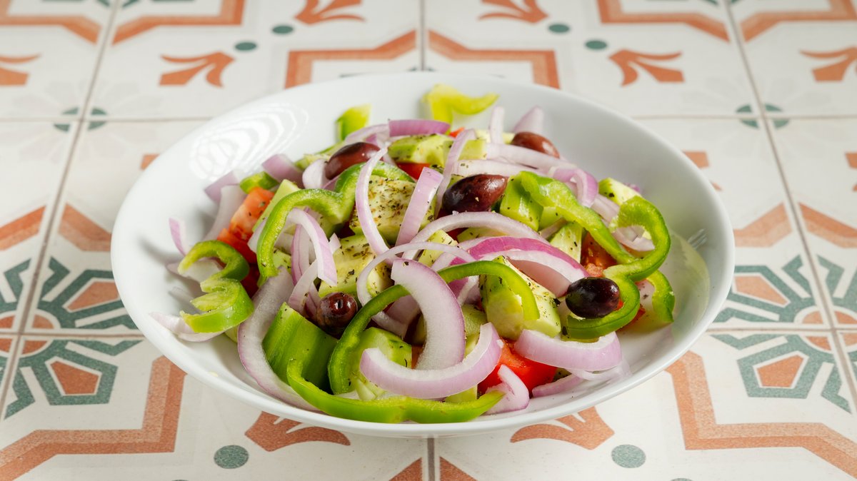 Σαλάτα με ντομάτα, αγγούρι, κρεμμύδι, πιπεριά, ελιές και κάππαρη