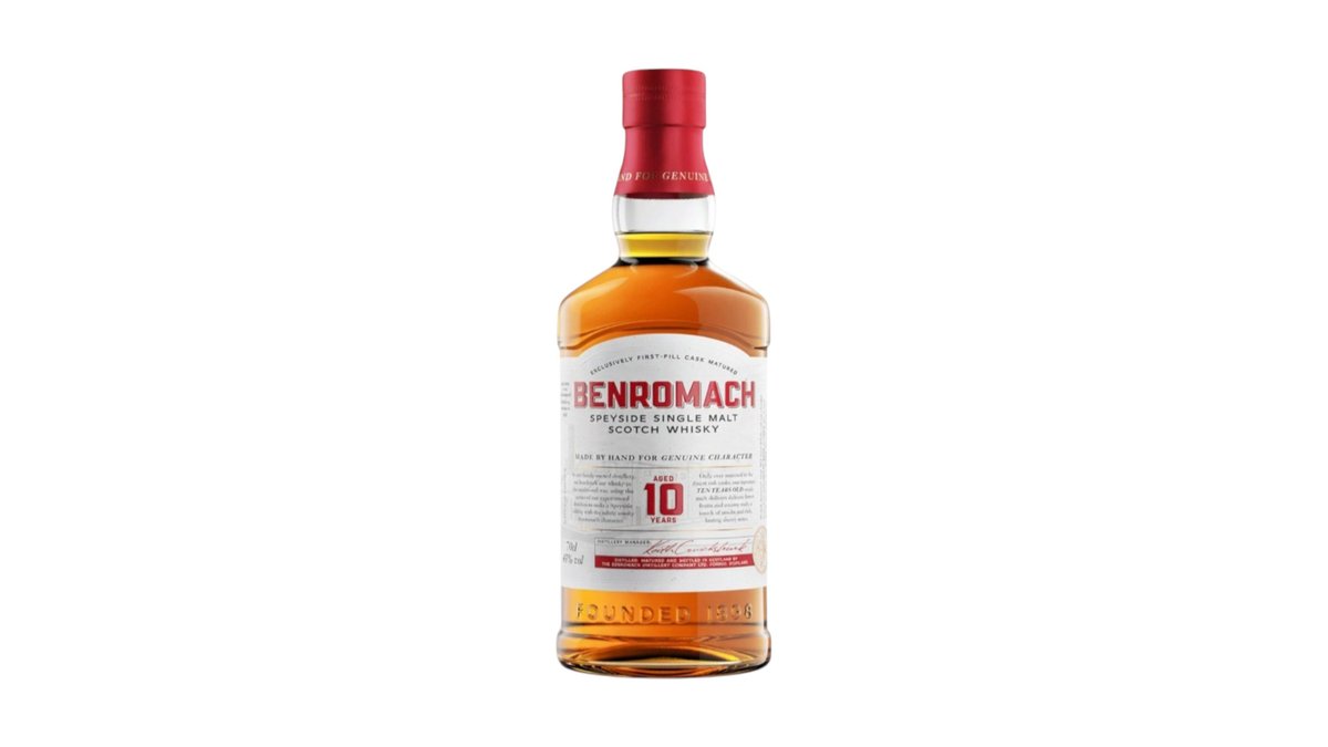 Το Benromach 10 Year Old είναι ένα Single Malt από το αποστακτήριο Benromach, το οποίο ωριμάζει σε ένα κλασικό συνδυασμό πρώτων γεμισμάτων βαρελιών ex-bourbon και sherry. TASTING NOTES: Η γεύση είναι γεμάτη από καπνιστές νότες γεμάτες αποξηραμένα φρούτα, φρέσκια βανίλια και φρουτώδες γλυκά μπαχαρικά. Η γλυκόπικρη επίγευση τζίντζερ, ξηρού σέρι και λυκίσκου το κάνει μοναδικό