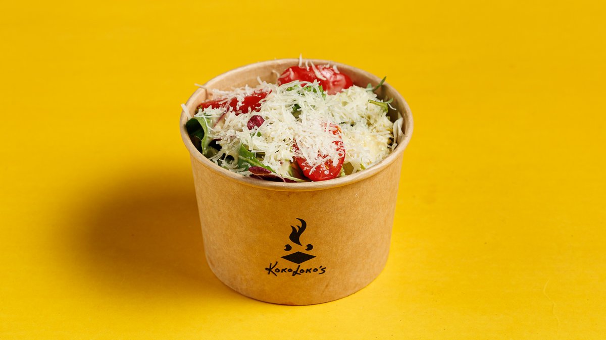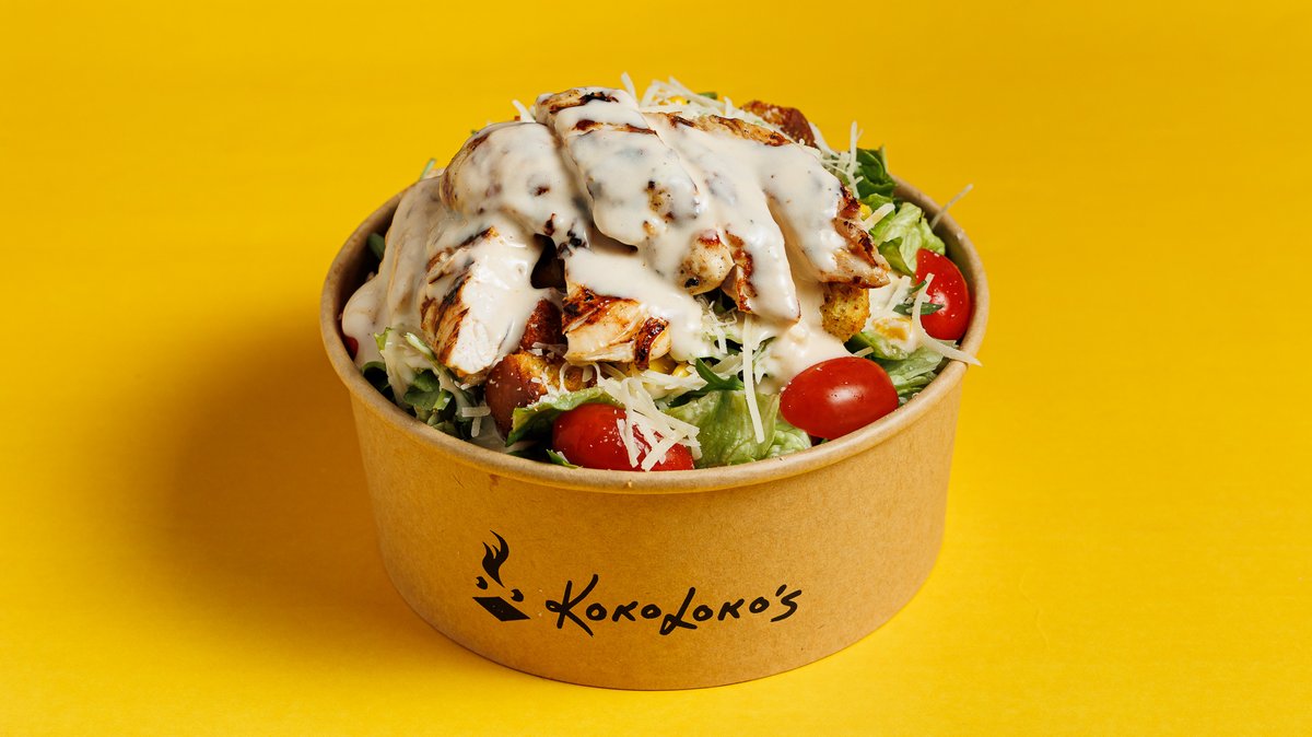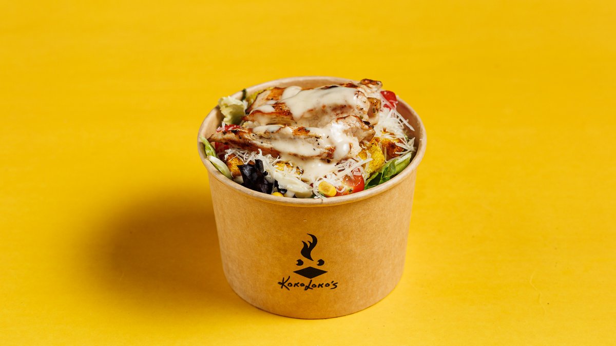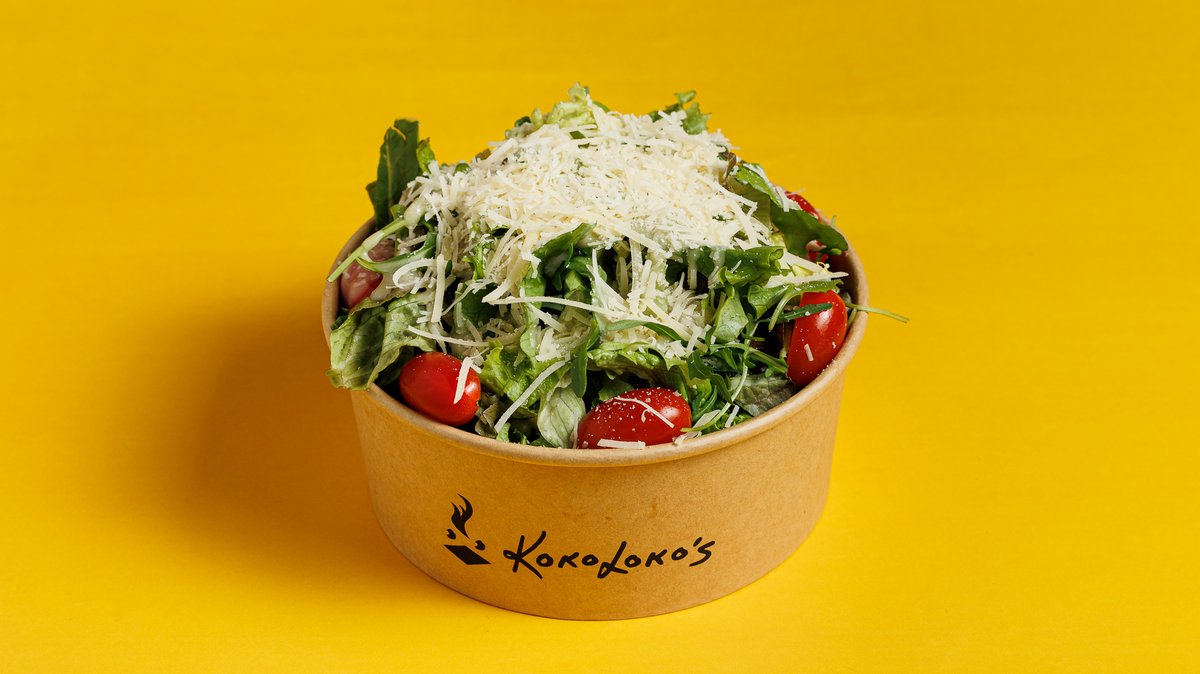 Ανάμεικτη πράσινη σαλάτα με κοτόπουλο, παρμεζάνα, καλαμπόκι, κρουτόν και Caesar`s sauce