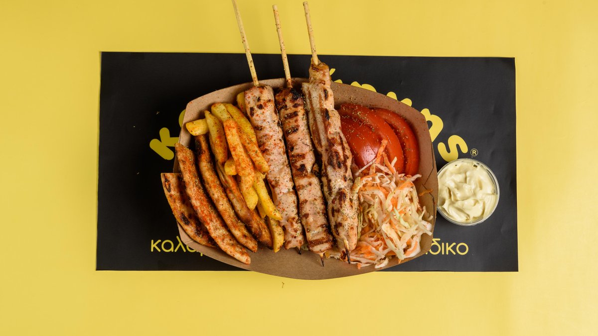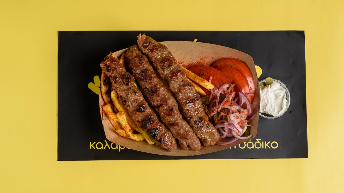 Συνοδεύονται από πατάτες, πίτα, ντομάτα, κρεμμύδι, ντιπ και τζατζίκι