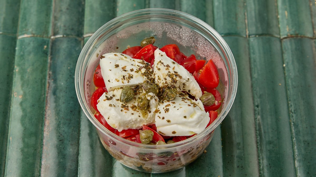 Σαλάτα με παξιμάδι, ντοματίνια, μοτσαρέλα, κάπαρη