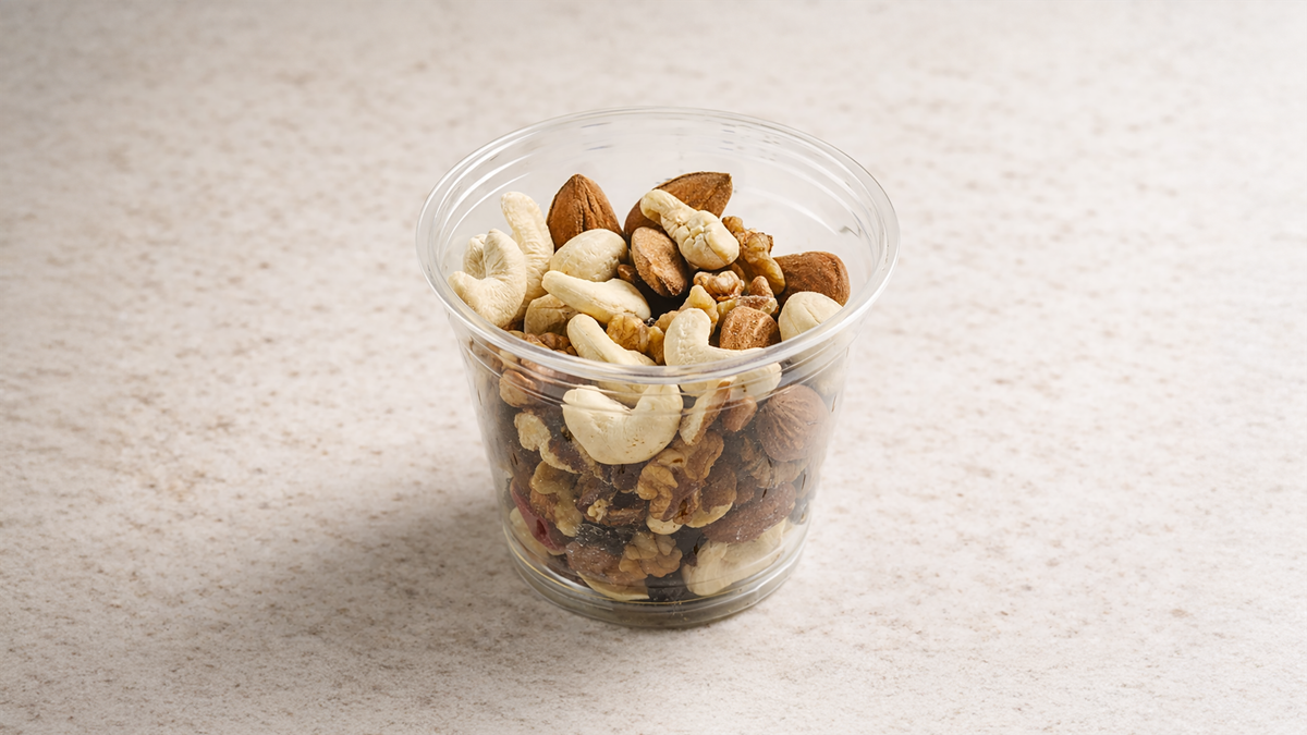 Με κάσιους, καρύδι, φυστίκι Αιγίνης, αμύγδαλο χωρίς αλάτι, cranberry και σταφίδα
