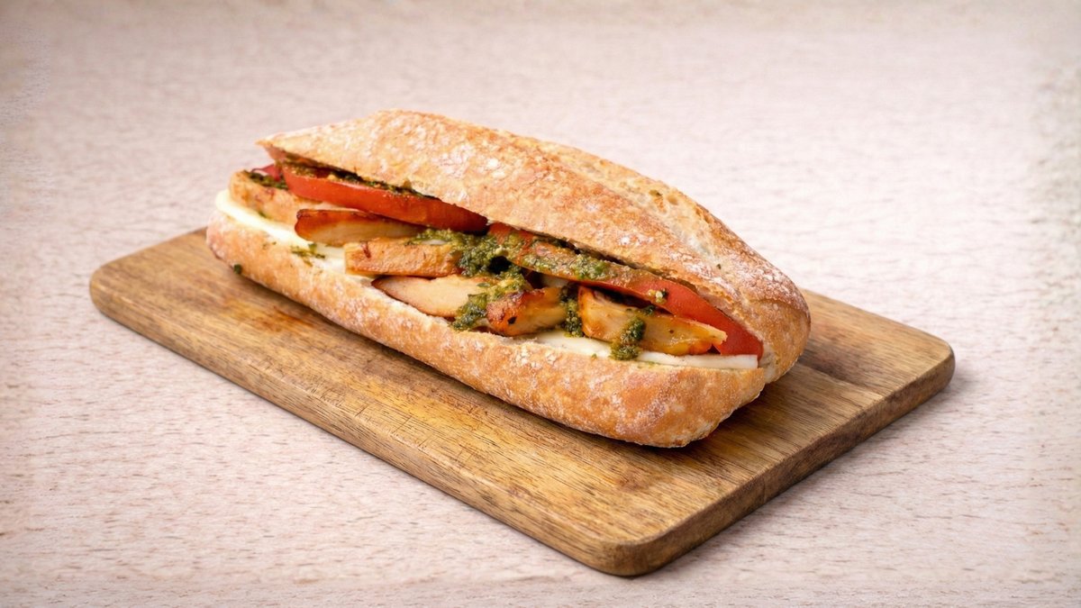 Με φιλετάκια ψητό κοτόπουλο, τυρί gouda, ντομάτα, καλαμπόκι και μαγιονέζα