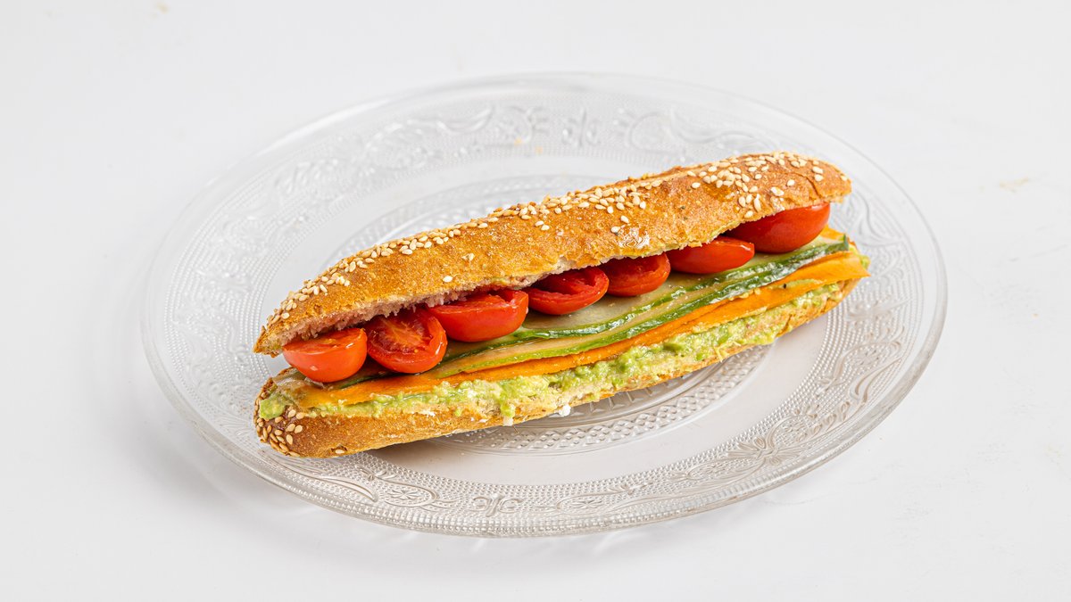 Μπαγκέτα με αβοκάντο, αγγούρι, καρότο και ντομάτα