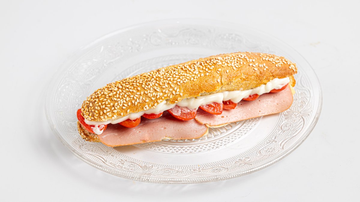 Μπαγκέτα με χειροποίητη μαγιονέζα, τυρί gouda, γαλοπούλα και ντομάτα