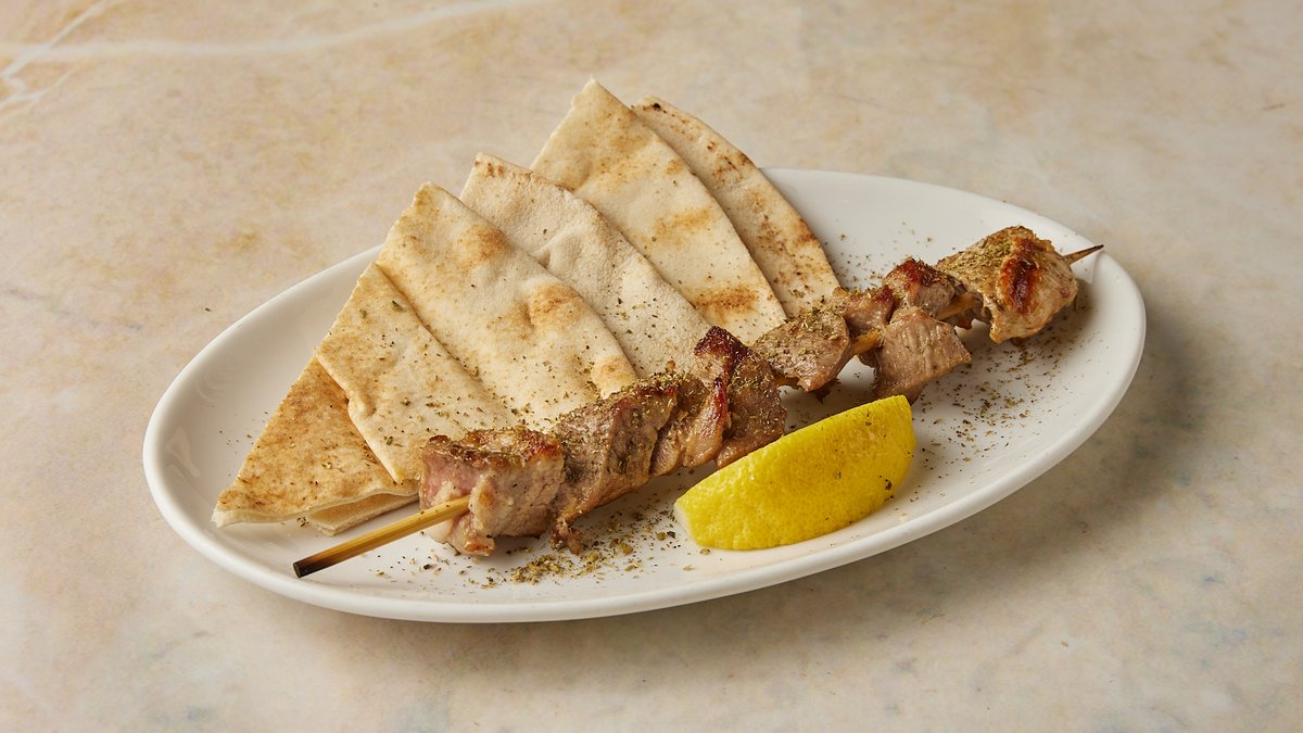 Τεμάχιο. Της ώρας. Συνοδεύεται από αραβική πίτα και Συνοδεύεται από γαρνιτούρα της επιλογής σας.