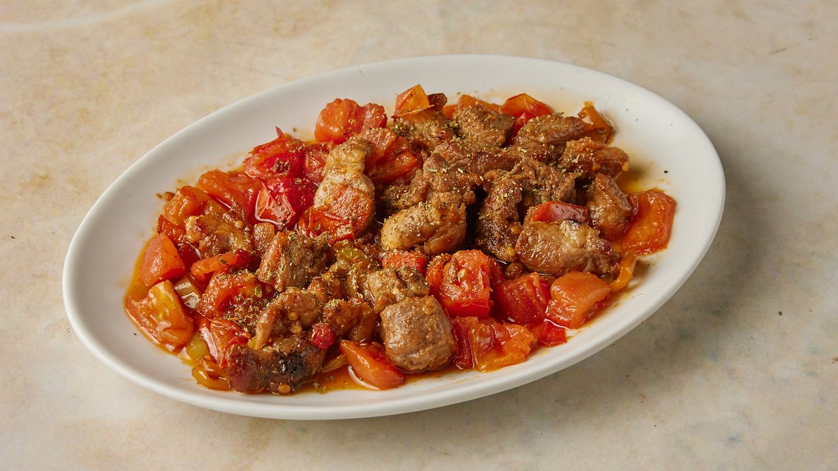 Της ώρας. Με χοιρινό, ντομάτα, πιπεριές (κέρατο και Φλωρίνης) και extra παρθένο ελαιόλαδο, σβήνεται με τσικουδιά. Συνοδεύεται από γαρνιτούρα της επιλογής σας