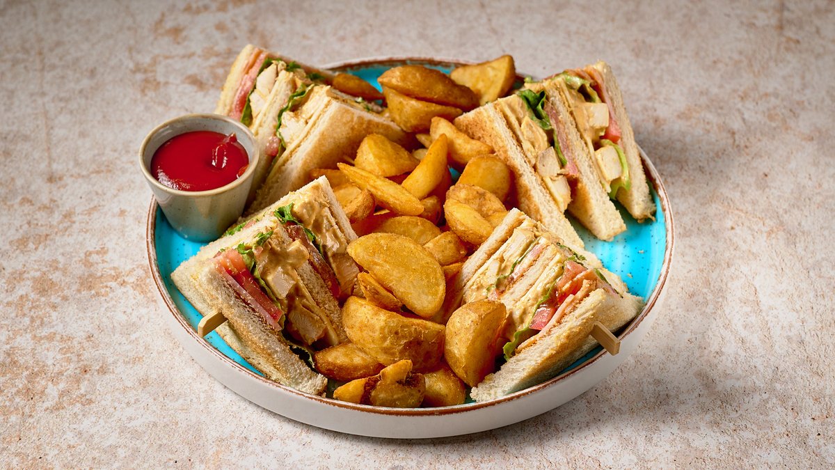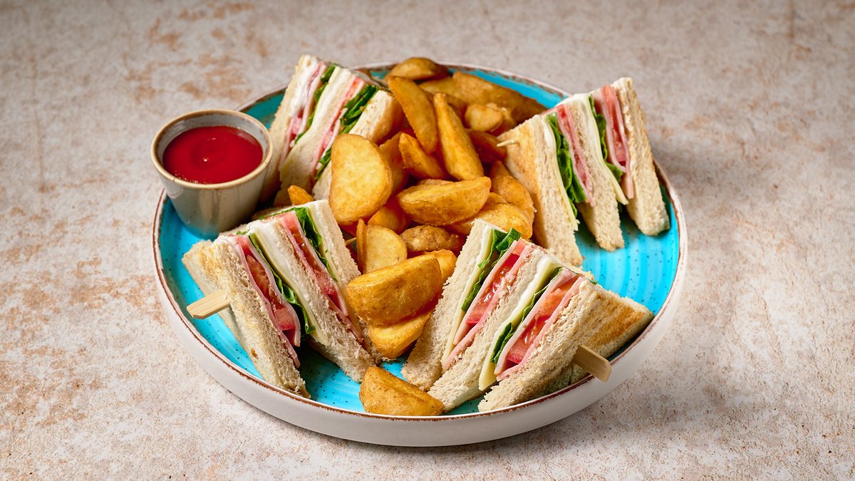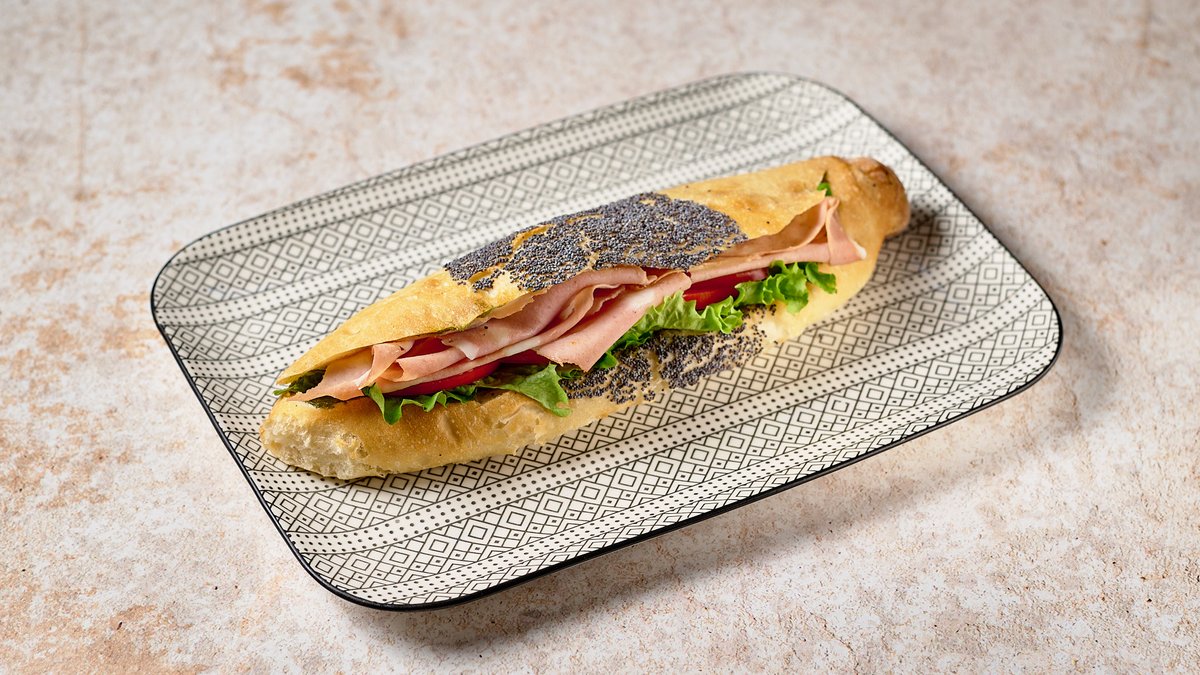 Με ζαμπόν, γαλοπούλα, ντομάτα, gouda, μαγιονέζα και λόλα. Συνοδεύεται από πατάτες τηγανητές country.