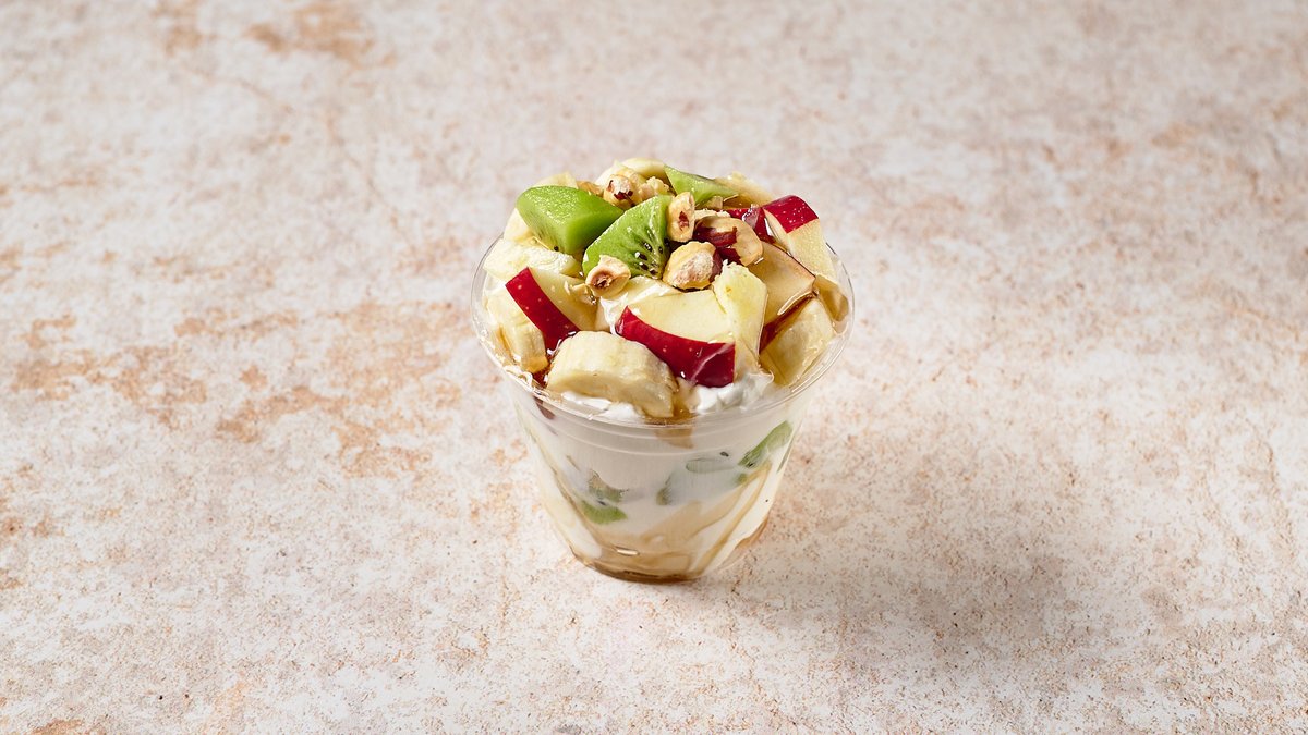 Με γιαούρτι 2%, ακτινίδιο, φράουλα, ανανάς, μπάνανα, φουντούκι και μέλι