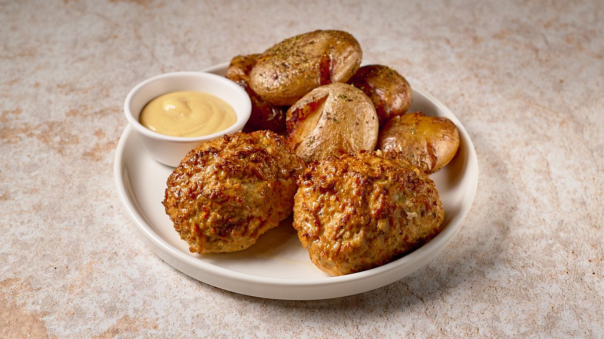 Με μείγμα μπιφτέκι και πατάτες baby σπασμένες