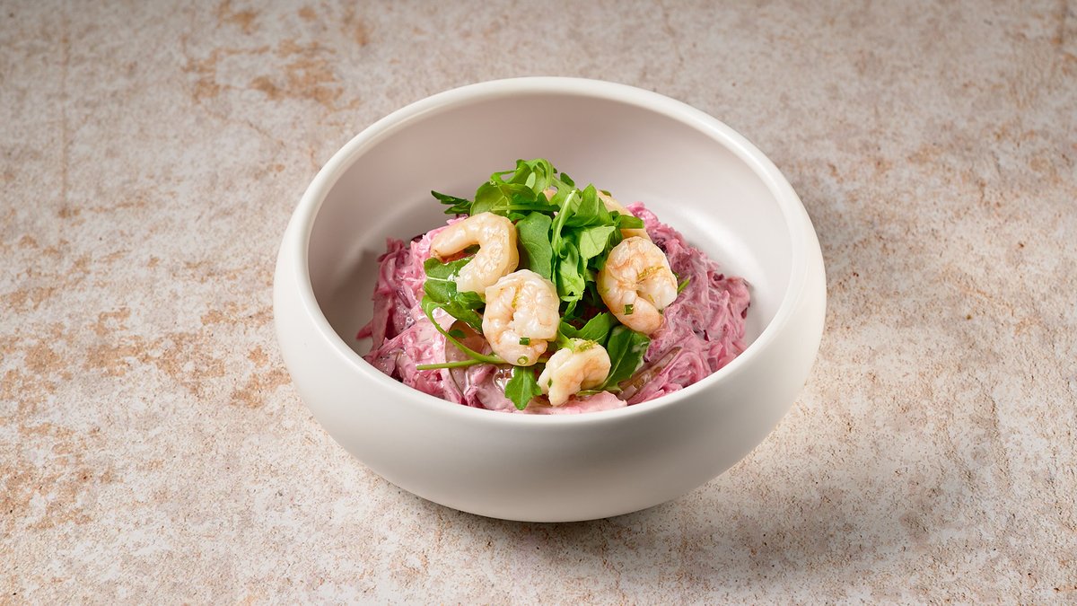 Με μαριναρισμένη γαρίδα σε λάιμ, coleslaw (πράσινο μήλο, ραντίτσιο, λάχανο, καρότο, mayo)