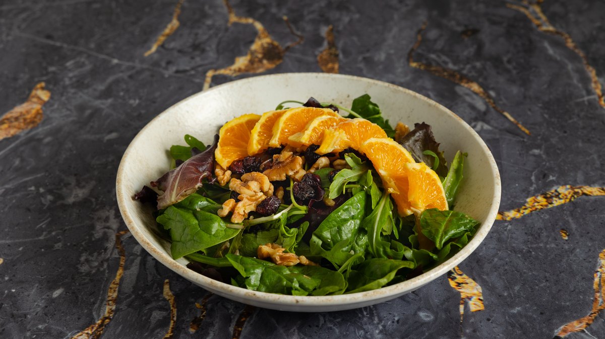 Mix σπανάκι, cranberries ,καρύδια ,πορτοκάλι dressing βαλσάμικο