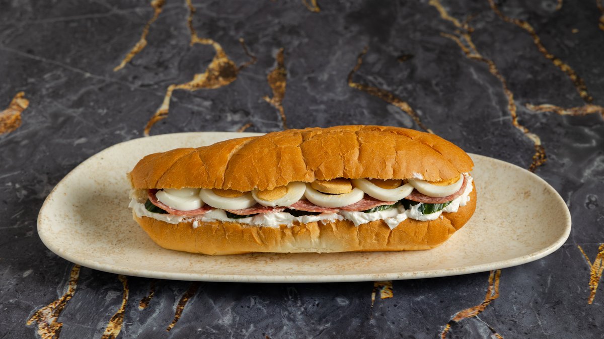 Με σαλάμι αέρος , μαγιονέζα,αγγούρι και αυγό