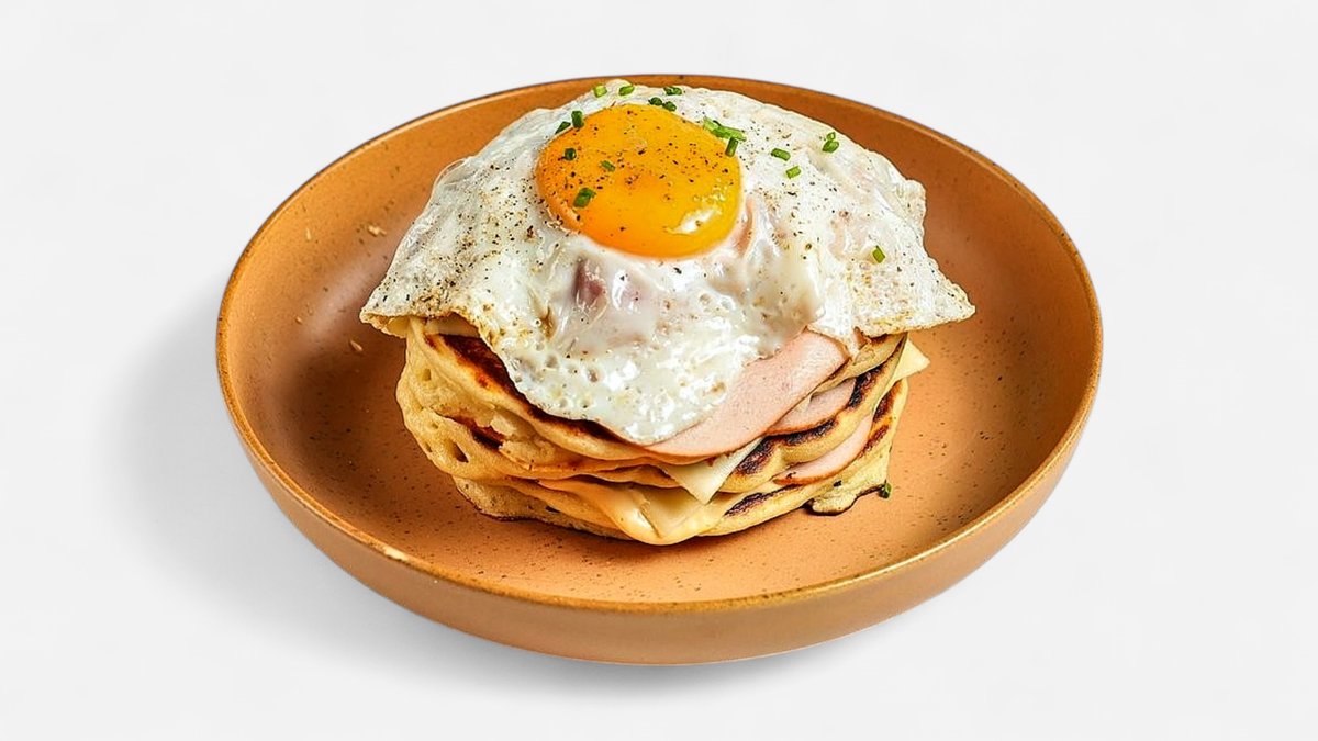 Pancakes με Τυρί , Μπέικον, Κρέμα Τυρί και Τηγανητό Αυγό